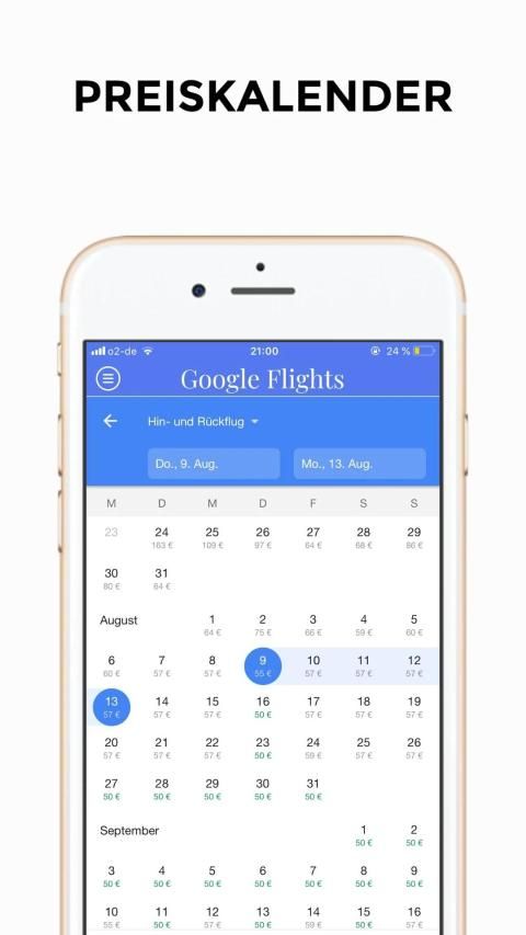 ⦁ Wählen einfach das Datum aus dem Kalender und den passenden Flug