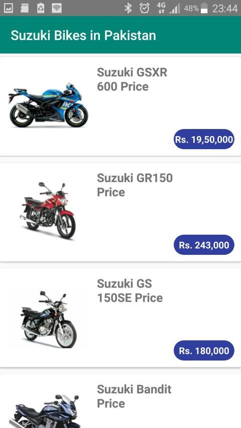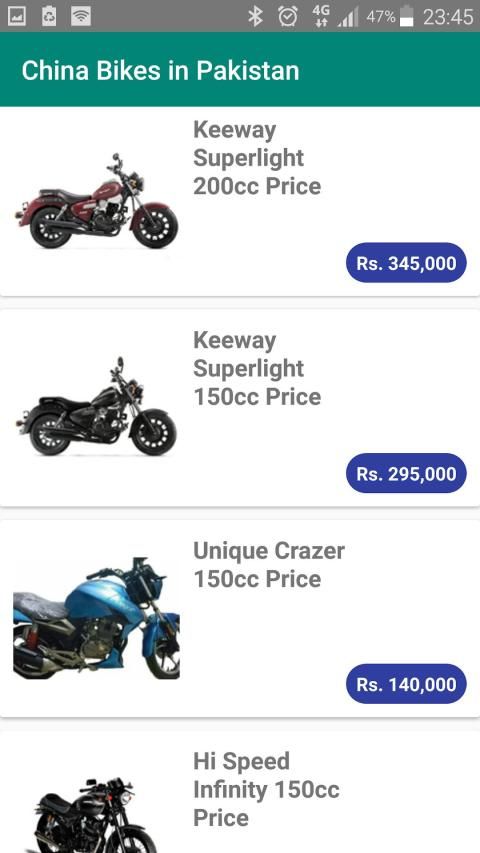 so due to this big industry of motorbikes in Pakistan we make an app to every one so all people can check their favourite bike prices in Pakistan and user can buy easily their favourite bike without any further effort.