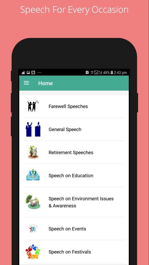 Here are different types of topics in this app. this app is very useful for everyone and also all peoples but speeches specially students. This app is helpful for students their competition and educational life.