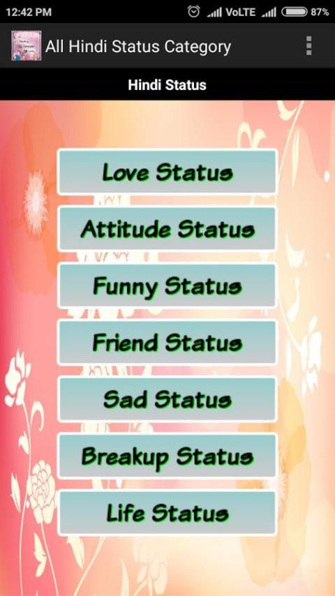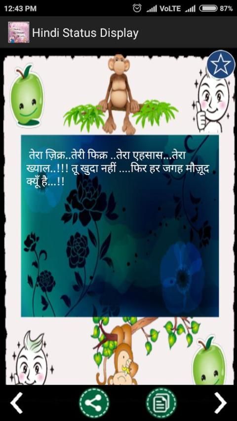 इस ऐप्लिकेशन में हिन्दी और अंग्रेजी भाषा और अंग्रेजी एसएमएस और हिंदी शायरी स्थिति होते हैं