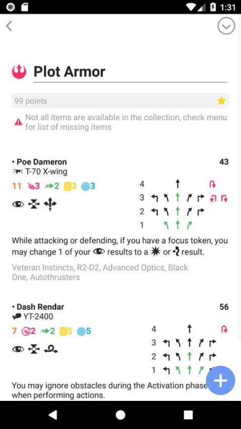 एक्स विंग स्क्वाड्रन बिल्डर एक साफ यूजर इंटरफेस के साथ, लगातार अद्यतन डेटा (हवा से अधिक) और मामले में क्लाउड में अपने स्क्वाड्रनों को बचाने के लिए की क्षमता कुछ अपने फोन के लिए होता!
