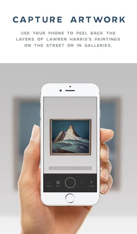 * एप्लिकेशन द्वारा समर्थित आठ Lawren हैरिस चित्रों में से किसी को अपने डिवाइस को धारण करके एक एआर अनुभव ट्रिगर। एप्लिकेशन को अपने लैपटॉप, टैबलेट या फोन पर छवियों के साथ के रूप में के रूप में अच्छी तरह से, एक मूल चित्र या प्रिंट के साथ काम करेंगे।
