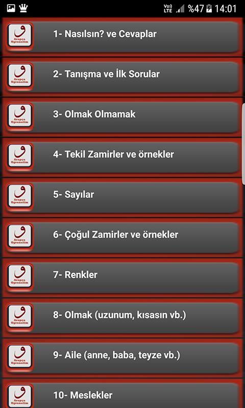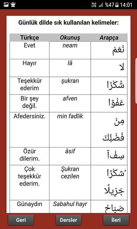 यह कभी इतना अरबी जानने के लिए आसान हो गया है। एक दूसरे को, उदाहरण के लिए, भाषण, शब्द और अरबी-आधारित कार्यपत्रकों से आसान सबक, आप आसानी से दोनों तुर्की और पढ़ने को देखने, आप आसानी से ऑडियो सबक सुनकर उच्चारण सीख सकते हैं याद कर सकते हैं। बस आसानी से अपने अरबी में सुधार डाउनलोड।