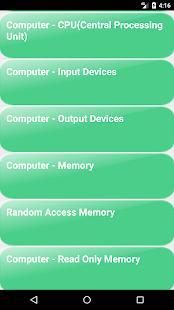 Learn Computer Basics app provides you Basic concepts about Computer. It is very helpful for Computer beginner.