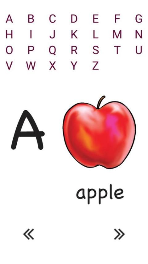 वर्णमाला स्लाइड साफ सुथरा नज़र प्रदान करने के लिए डिजाइन किया गया है। यह बच्चों में मदद करता है पत्र और संबंधित छवियों पर ध्यान केंद्रित करने के लिए।