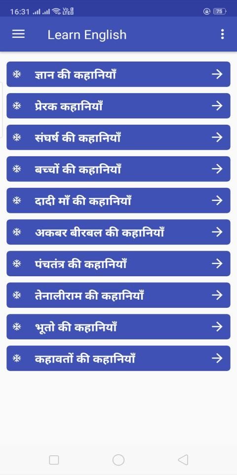 - 100s of Interactive english story to help you learn english from very good hindi story.