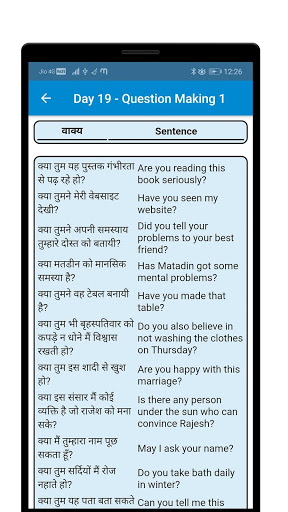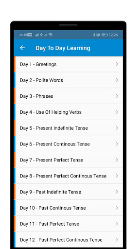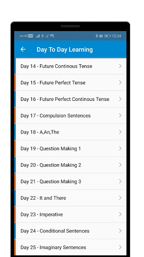 इन टॉपिक के अंदर और भी टॉपिक्स हैं। २५ दिनो के लेसन में ये सारे टॉपिक्स हैं Greetings, Polite Words, Phrases, Use of Helping Verbs, All Type of Tenses, Compulsion Sentences, Articles आदि।