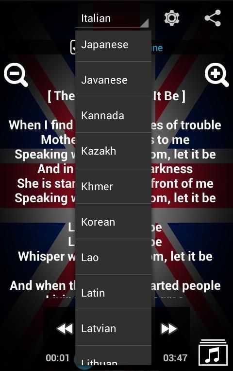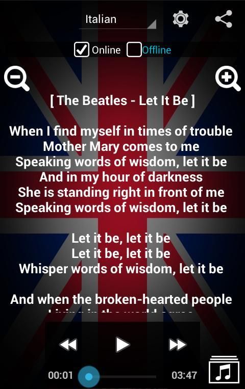 इस एप्लिकेशन को आप सुन रहे हैं गीत के बोल पा सकते हैं, इसलिए संगीत खेल रहा है जब आप के साथ पढ़ सकते हैं।