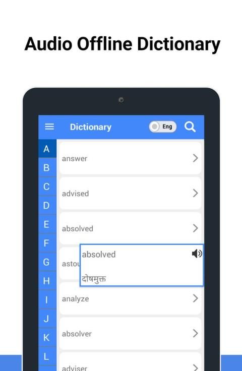 हिन्दी शब्दकोश •: अंग्रेजी और हिंदी शब्दकोश के लिए अंग्रेजी के प्रति सम्पूर्ण हिन्दी उपयोगकर्ता हिंदी शब्दों के अर्थ की सहायता के लिए प्रदान की जाती है।