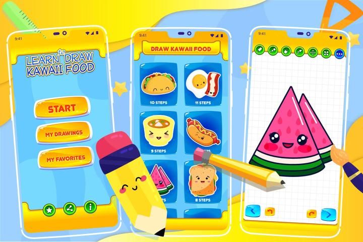 Learn How to Draw Cute Food will increase your drawing skills to higher level with amazing Cute Kawaii Food drawings. This amazing Kawaii Drawing app provides step by step guide to teaches you how to draw Cute Kawaii Food and improve your level of being an artist.