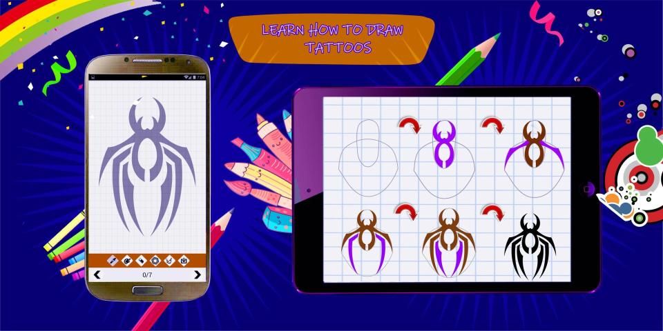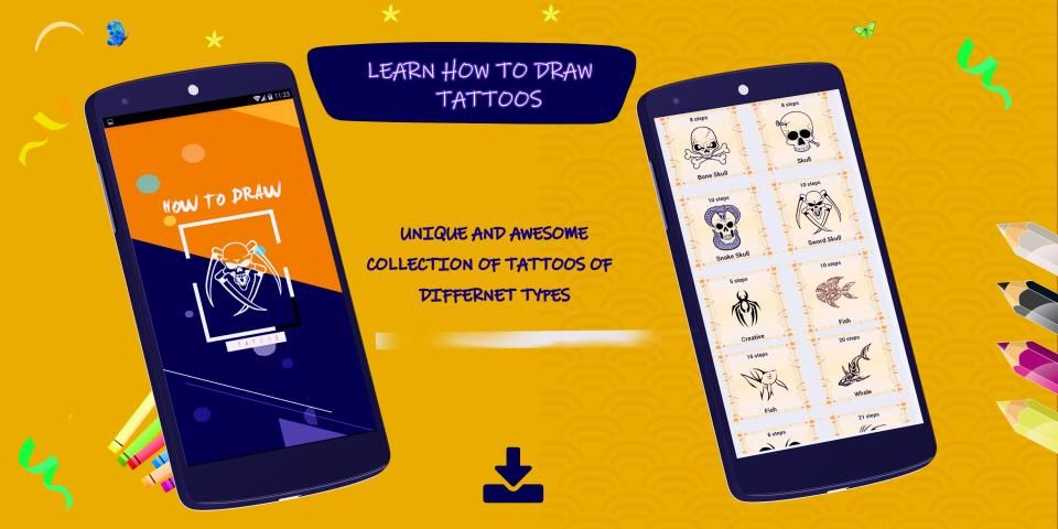 How to Draw Tattoos will teach you how to draw different types of tattoos and create your wonderful design. This app contain best collections of tattoos shapes, its very easy to use
