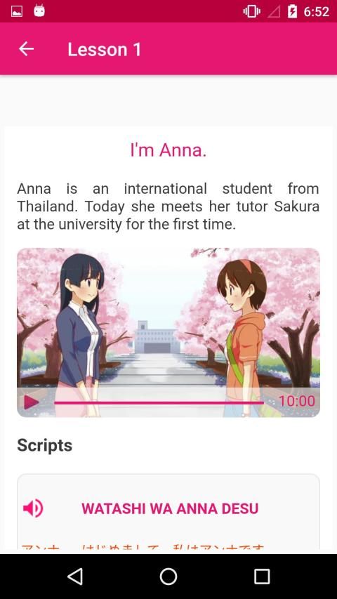 The heroine of the story is Anna, a 20-year-old Thai student who loves Japanese manga. She has come to Japan to learn the Japanese language for one year at a university in Tokyo. She will learn practical Japanese through various experiences, such as classes at the university, daily life at a dormitory, shopping, and traveling.