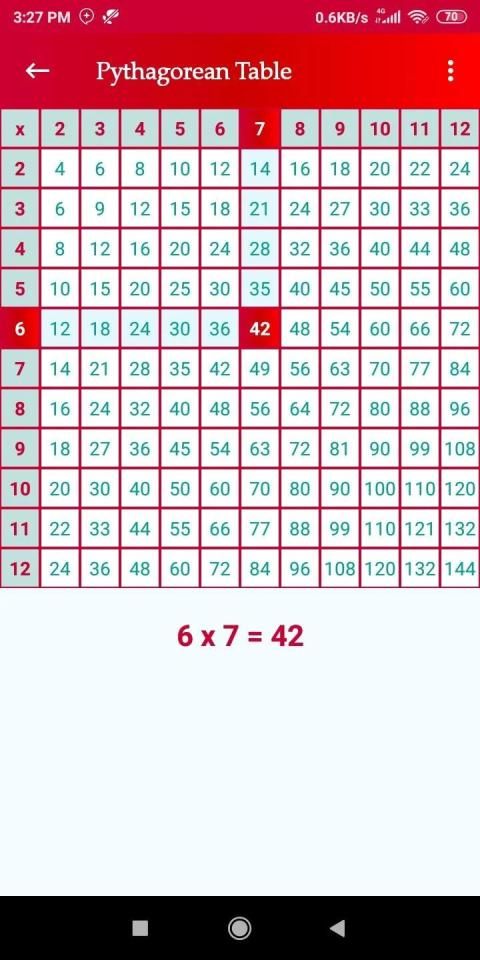 * जल्दी से टेबल सीखने के लिए पायथागॉरियन टेबल।