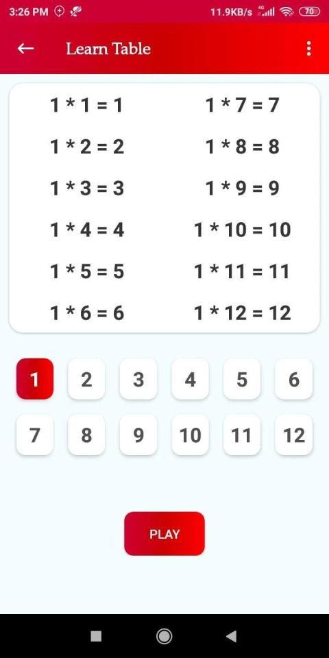 * Learn tables from 1 to 12 quickly and memorize for long time.