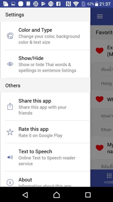 जानें थाई कि थाईलैंड के लिए आगंतुकों देने के मोबाइल एप्लिकेशन का उपयोग करने के लिए आसान है और जो लोग थाई भाषा में एक अच्छी शुरुआत सीखने में रुचि रखते हैं। जानें थाई देशी वक्ताओं का उपयोग कर दर्ज की गई है और हम बाहर सबसे अच्छा प्रयास किया है में उच्चारण यह समझने में आसान है सुनिश्चित जबकि प्रामाणिक होने के लिए।