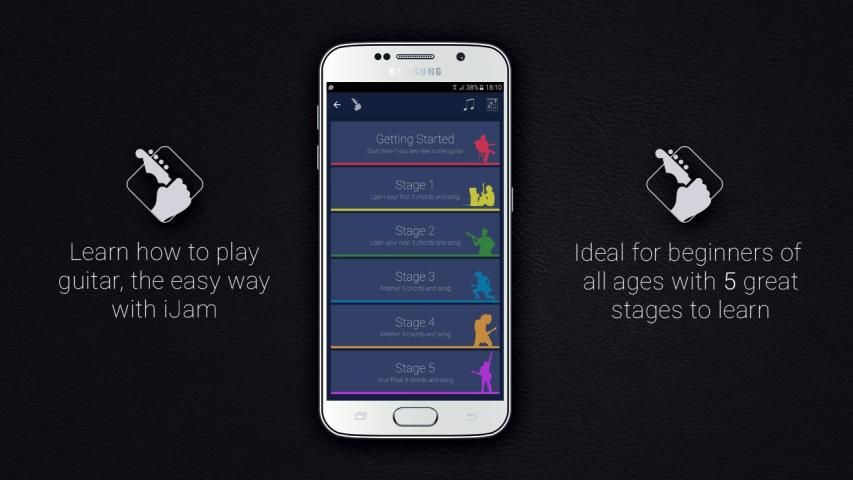 iJam एक विस्तृत विवरण जो समझने में आसान है के साथ प्रत्येक चरण के माध्यम से लेता है और हर चरण के अंत में एक वीडियो गिटार ट्यूटोरियल और व्यक्तिगत गिटार ट्यूटर है कि आप कैसे गिटार chords आप में पहले सीखा के साथ एक गाना खेलने के लिए दिखाएगा है मंच।