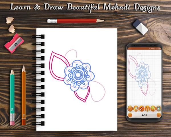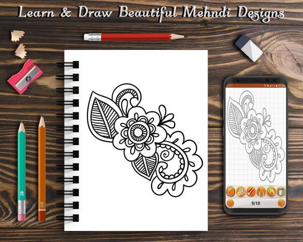 Learn to Draw Beautiful Mehndi designs is a learning app that teaches you How to draw beautiful mehndi patterns step by step. Learn mehndi designs app is fully entertaining and fun activity for teaching you to learn how to draw basic mehndi designs of all types. Every girl loves to draw mehndi tattoos on her skin and with the help of this mehndi app, you can draw latest mehndi designs which will make you look different from others on every occasion.