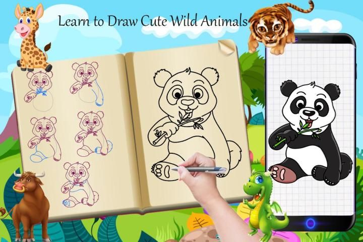 Learn How to Draw Wild Animals is perfect app for those who want to be an artist and love drawing wild animals. This App teaches you how to draw cute animals in simple steps and improve your confidence of drawing and coloring.