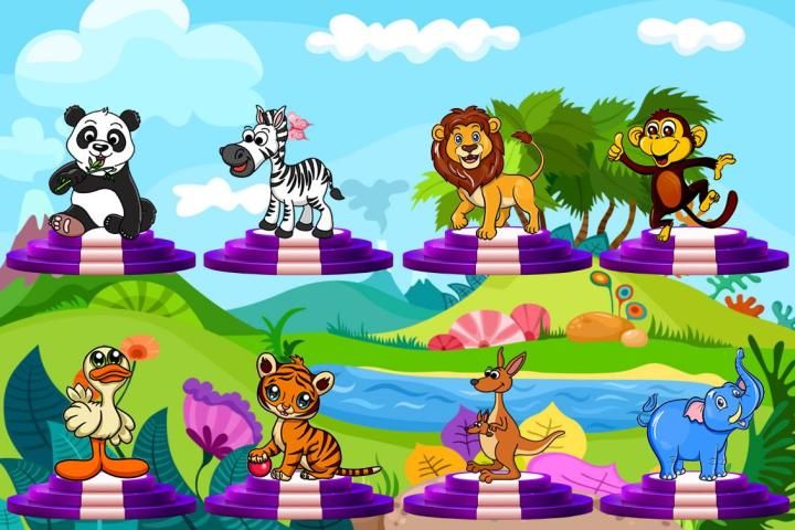 - बंदर, पांडा, शार्क, ज़ेबरा, गोरिल्ला, वालरस, तेंदुआ, भेड़िया, एंटीलोप, ईगल, जेलिफ़िश, केकड़ा, जिराफ़, कठफोड़वा, ऊंट, स्टारफ़िश, कोअला, मगरमच्छ, उल्लू, बाघ, भालू, ब्लू व्हेल, कोयोट, चिंपैंज़ी, रैकोन, लायन, आर्कटिक वुल्फ, मगरमच्छ, डॉल्फिन, हाथी, गिलहरी, सांप, कंगारू, हिप्पो, खरगोश, लोमड़ी, हरे, तोड़े, मेंढक, हिरण, चूहा, छिपकली, तिल, हिरन
