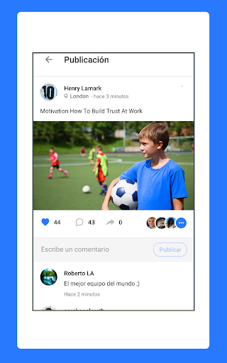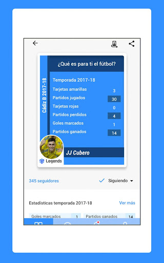 The player card is your profile and it works like a social network: you can give and receive supports with "likes", commenting and sharing the publications, with total transparency and at any time. On the back are the statistics that you are updating after each day of the league, so that they can comment on matches, plays, training, details about other teams. To be followed by your family and friends or, simply, to talk about what you like most: football.