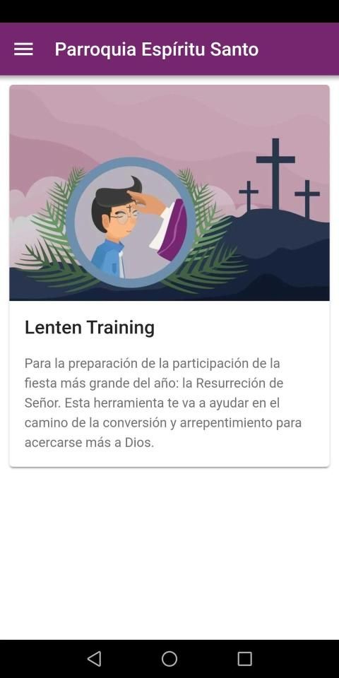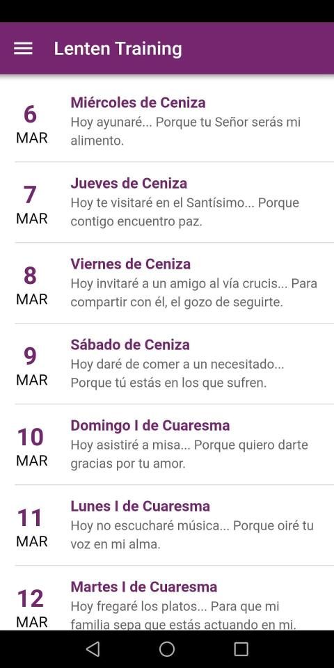 Version inicial de la aplicación Lenten Training. Preparación en tiempo de cuaresma para reflexionar todos los días hasta llegar a participar de la mejor fiesta del año: La Resurrección del Señor.