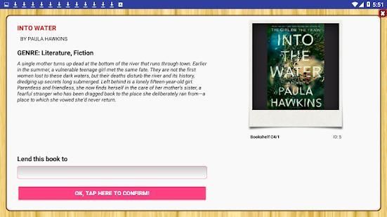 The application allows children and adults to manage the collection of books through a professional database, the ability to add books with pictures taken from the Gallery/Camera and manage loans by setting a time limit for returns.