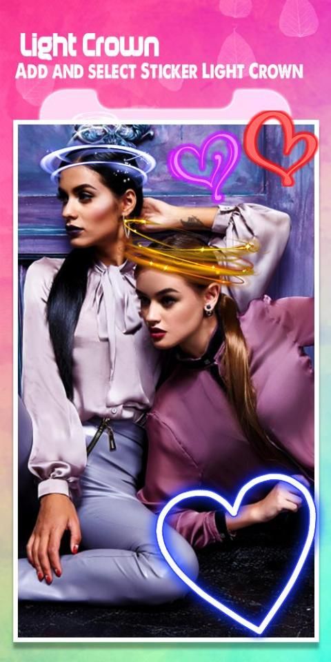 Crown photo camera is a true game – changing in order to moving up your pictures into a realistic artworks using the extraordinary virtues offered by the best light effects and light leak photo editor , make sure to with this powerful photo editor to beautify your pictures with sweet collection of stickers includes: lovely dog face stickers , adorable cat face stickers , artistic heart crown stickers , flower crown stickers , also you will benefit from a lovely rabbit face stickers , and many motion stickers, Keep in mind that Crown light neon stickers are easy to add just take a picture or select one from gallery, then choose your favorite light crown stickers and watch the miraculous change that can light crown stickers bring to pictures in addition this light crown effects allows you to embellish photos with a large variety of emojis and smileys