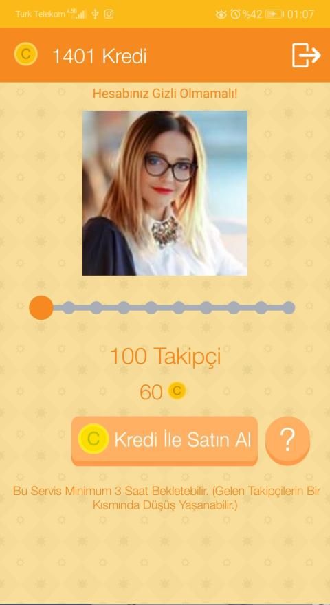 • Takipçi işlemleri için minimum 60 Kredi,