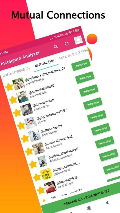 यह बाजार में अब तक का एकमात्र मोबाइल एप्लिकेशन है, जो आपकी सभी पसंद, पसंद, अनुयायियों का विश्लेषण करता है।