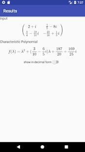 एक आसान से उपयोग रेखीय बीजगणित कैलकुलेटर का समर्थन करता है कि: