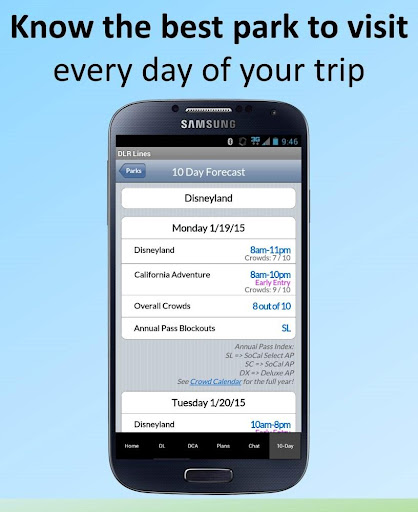 -A Crowd Calendar showing you how busy each park will be over the next ten days.