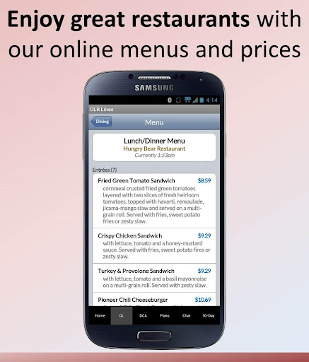 -Menus and prices for every restaurant, kiosk, food stand, and cart in all of Disneyland Resort – more than 6,000 things to eat! Every menu is searchable – you can find every steak in California Adventure or throughout the parks, Downtown Disney, and the official Disneyland Resort Hotels!