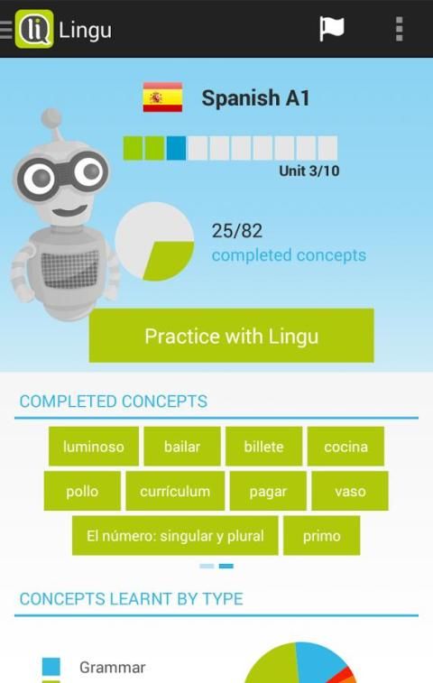 Lingualia जो आप सब पर है और बहुत कम प्रयास के साथ कुछ ही समय में प्रगति में मदद करता है भाषा सीखने के लिए एक बुद्धिमान प्रणाली है।
