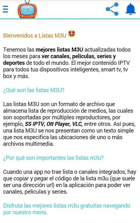Listas m3u actualizadas constantemente para ver canales, películas, series y deportes de todo el mundo.