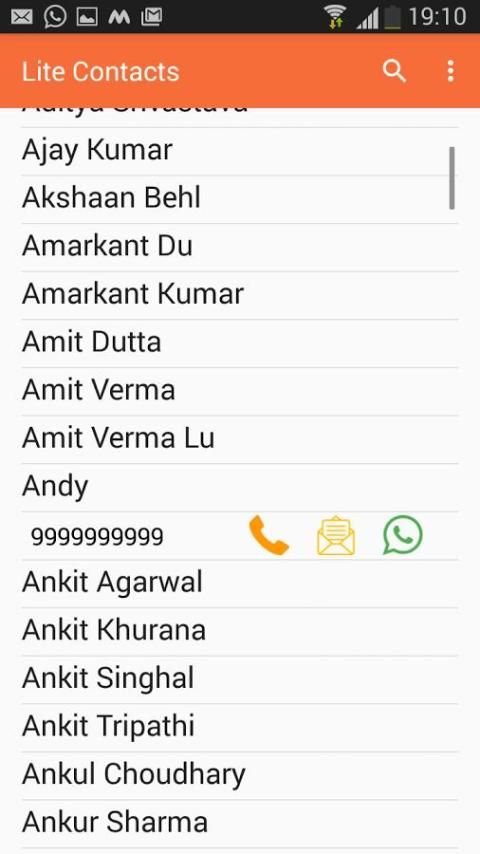 This app provides one touch dialing, messaging and whatsapp chatting. Lite Contacts app stores only those contacts which have a phone number attached to them. In this way only usable contacts appear. You can share any contact number from Lite Contacts with other apps easily.