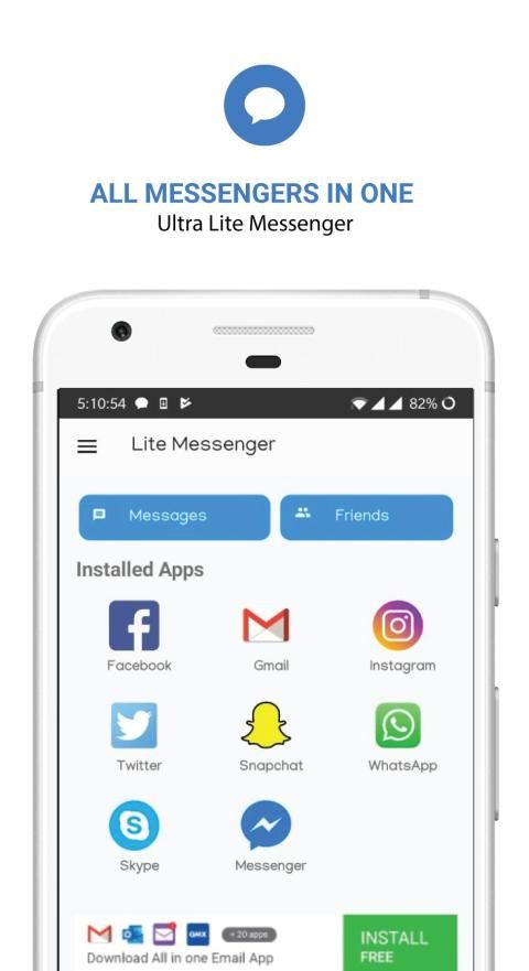 The Ultra Lite Messenger Lite app will help all users open their popular messenger & Social Media applications, such as Free Messengers: WhatsApp, Facebook Messenger, Viber, KakaoTalk, Wechat, Line, Tango, Hangouts, Snapchat, Telegram, Sarahah and others, quickly without any lag.