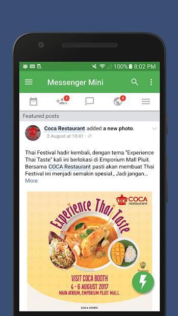 Free, lightweight alternative for Facebook Lite, Facebook messenger lite which allows you to chat with your Facebook friends, send emoticon, videos, images, gift, browse news feed, comments, etc...