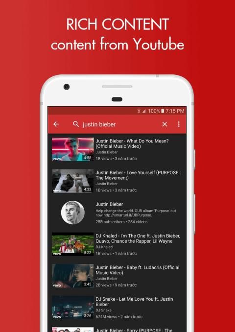- YouTube music player: watch your videos in full screen or use the floating popup for multitasking