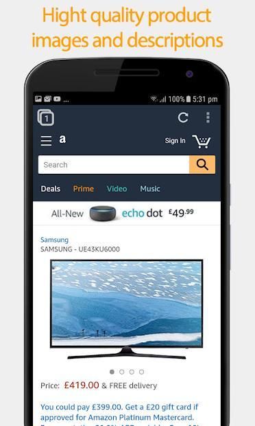 Shopping is now easier than ever with the Lite for Amazon app. Especially suited for less powerful android phones and tablets or ones with limited Internet connections.