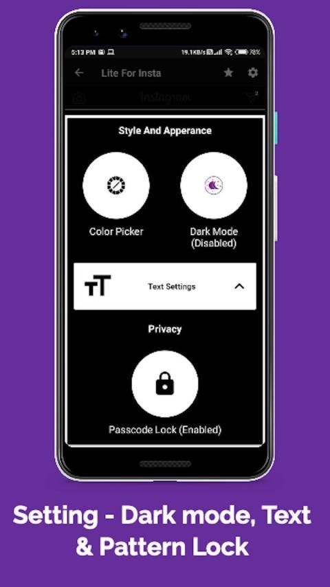 Also available theme in Lite for insta lite : messenger lite - dark mode instagram, Pink mode insta, Multi Color theme for insta lite and allow pattern lock in insta lite then not can access your app without your permission.