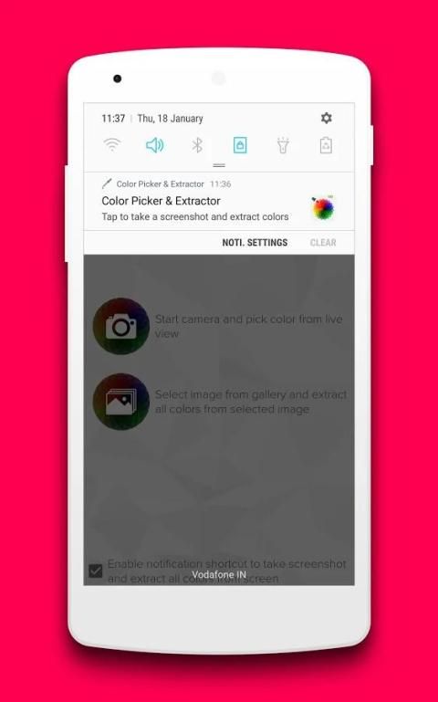 अधिसूचना शॉर्टकट पर बस ग्राहक ▶ और यह आपके वर्तमान स्क्रीन के स्क्रीनशॉट लेने और स्क्रीनशॉट से सभी रंग कोड निकाल देंगे।