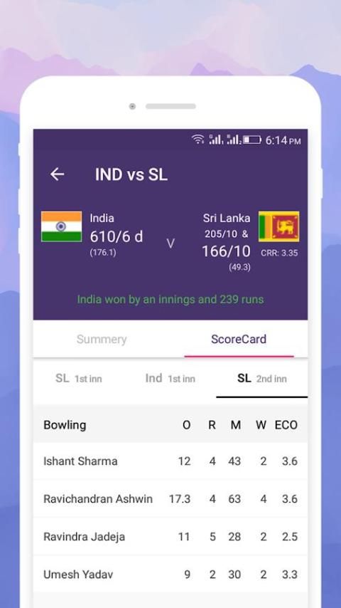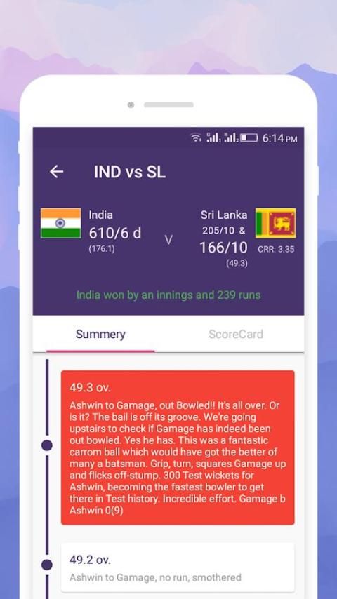 लाइव क्रिकेट स्कोर एप्लिकेशन Play स्टोर में सबसे अच्छा क्रिकेट एप्लिकेशन और सबसे तेजी से क्रिकेट स्कोर एप्लिकेशन है।