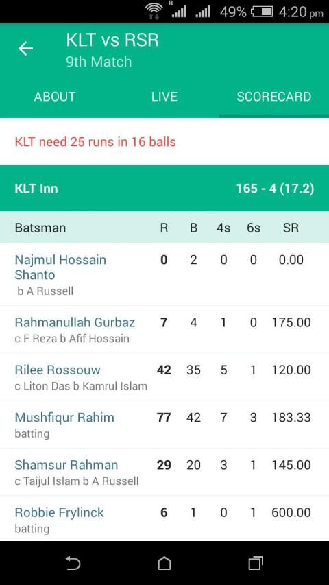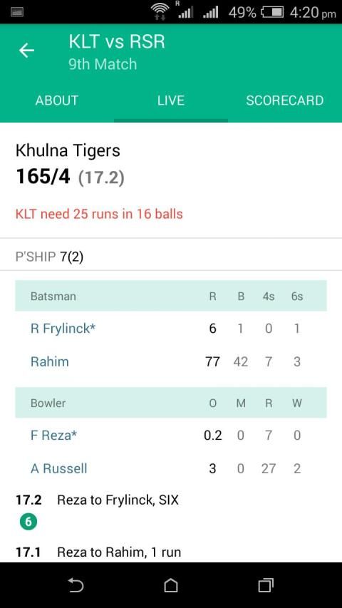 Cricket Score app is made for perfect cricket scoreboard. You can enjoy today cricket match ball by ball in single screen, no need to navigate through the app unnecessary. You can follow the details of the any live match and also can see scoring by overs and bowlers.