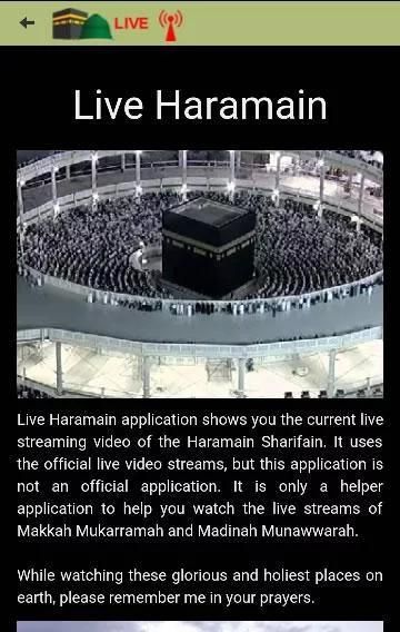 यह आधिकारिक लाइव वीडियो धाराओं का उपयोग करता है, लेकिन इस आवेदन के एक अधिकारी ने आवेदन नहीं है। यह मदद करने के लिए आप मक्का और मदीना Mukarramah Munawwarah का जीना धाराओं को देखने के केवल एक सहायक अनुप्रयोग है।