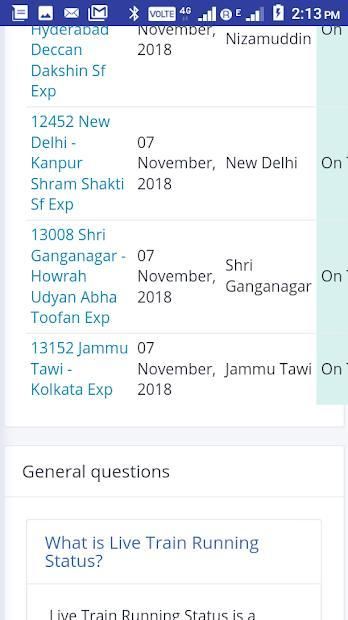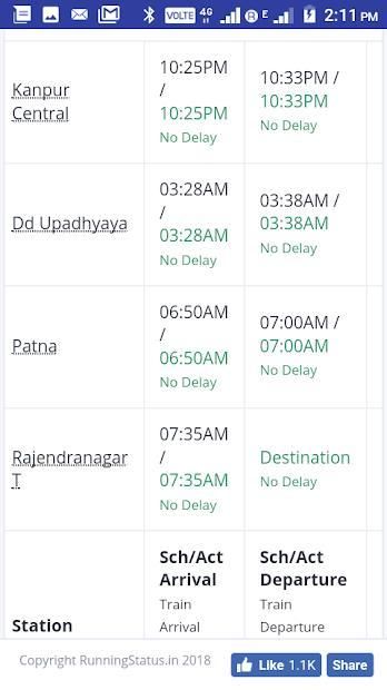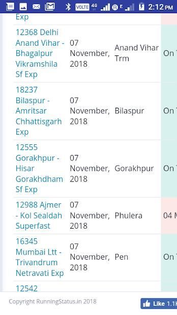 Status running train updates change frequently. So it is recommended that the user check the status updates frequently. Nearer to the estimated time of arrival, the train running status information becomes more and more accurate.