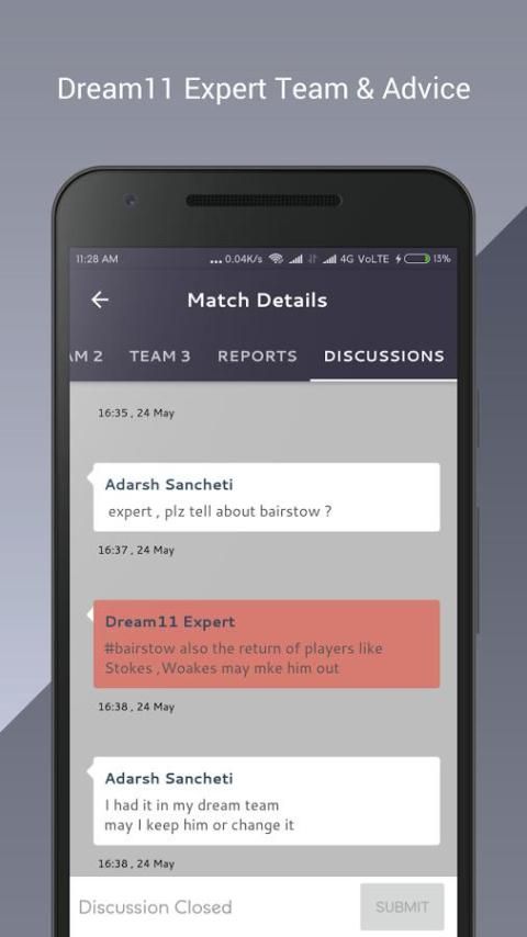 अन्य dream11 उपयोगकर्ताओं और विशेषज्ञों के साथ लाइव चर्चा।