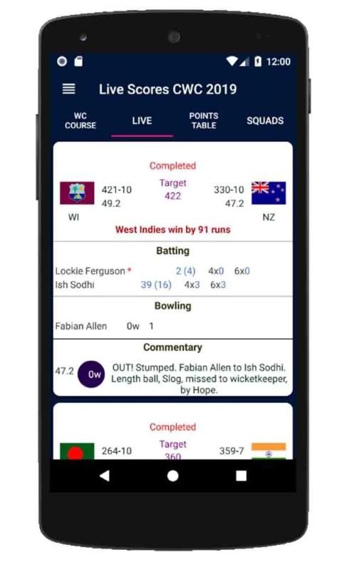 We will bring you the live coverage of cricket world cup 2019 through this application.We will bring you live scores,ball by ball commentary,lineups,details & statistics of teams and players all through this single application.