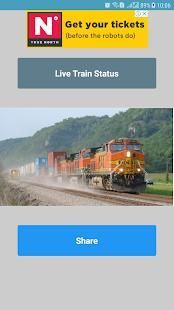 लाइव ट्रेन स्थिति सबसे तेज, सबसे आसान और एक बहुत ही प्रकाश शांत देशी इंटरफेस के साथ भारतीय रेल के बारे में हर आवश्यक जानकारी प्राप्त करने के आवेदन है। आप समय के किसी भी बिंदु पर वर्तमान देरी और स्थिति के बारे में ट्रेन का दर्जा मिल सकता है, जबकि में या यात्रा से पहले प्लस आप उपलब्धता और समय की तरह की जानकारी प्राप्त कर सकते हैं।