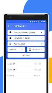 सीट उपलब्धता - कई ट्रेनों और लाइव ट्रेन स्थिति एप्लिकेशन पर वर्ग के विकल्प के साथ रेलवे सीट उपलब्धता की जाँच करें। किराया, ट्रेन का शेड्यूल, स्टेशनों सूची, गाड़ियों सूची, रेल मार्गों का विवरण।