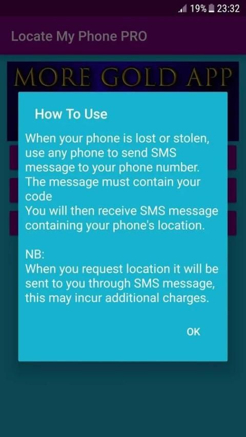 बस एप्लिकेशन इंस्टॉल करें और अपने कोड निर्धारित करते हैं, और फिर आप अपने कोड युक्त अपने फ़ोन पर SMS संदेश भेजने के लिए अपने स्थान प्राप्त करने के लिए किसी भी अन्य फोन का उपयोग कर सकते